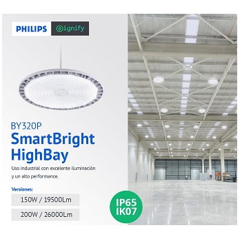 SmartBright HighBay BY320 LED130 100W, Línea Campanas; Marca: PHILIPS P/N 911401827882;