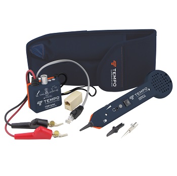 El kit de rastreo de sonda y tono de Tempo permite a los técnicos profesionales identificar cables de un paquete, monitorear el voltaje que pasa a través del circuito, verificar interrupciones en el circuito y rastrear cables a través de las paredes. El kit de rastreo Tempo incluye el tono generador que inyecta una señal en el cable que se va a rastrear y la sonda de rastreo que se utiliza para rastrear el cable. Conexiones Rápidas, Confiables. RASTREO MÁS RÁPIDO. El tono de trino claro le permite rastrear cables telefónicos, de datos y de seguridad más rápido. Características • Seguimiento estándar de la industria para cableado de voz, datos y video • Audífono y control de ganancia ajustable (200EP-G) • Luz de trabajo LED: vea detrás de los muebles, dentro de los estantes y otras condiciones de iluminación tenue • El indicador de proximidad de tono LED se ilumina más cuanto más cerca esté llegar al par correcto (más cercano al tono) • Detectar fallas: servicio telefónico de una o dos líneas, voltaje/polaridad y cortocircuitos/continuidad (77HP-G) TRABAJO MÁS FÁCIL. Visualización más fácil de la intensidad de la señal y tres modos de escucha: altavoz, auriculares o teléfono integrado. • Firmas de rastreo distintivas: dos tonos disponibles para un rastreo más fácil • Protección de voltaje mejorada: hasta 150 V CC • Puntas de metal o plástico: use la mejor punta para el trabajo • Incluye: generador de tonos 77HP-G, sonda de rastreo 200EP-G, enchufe modular, cables de prueba de cocodrilo, RJ11/45 y adaptador de enchufe
