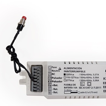 CARACTERÍSTICAS Se utilizan con cualquier tipo de lámpara Led. Genera una tensión de 220 Vcc de salida constante desde el inicio hasta el final de la autonomía. Rendimiento lumínico mayor al 90%, con lámparas hasta 40 Watts. No requiere pruebas de compatibilidad que verifiquen su funcionamiento en emergencia si se utiliza con lámparas menores a 40 Watts