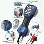 Telefono de Prueba MT-8100 IP54: Pro’sKit MT-8100 Butt Set viene con todas las funciones que necesita para ser más productivo en el campo, fue aprobado por la norma IEC / EN 60529 IP54 para la prueba de agua y al polvo, y cuenta con las últimas mejoras a caer fiabilidad protección. MT-8100 es una unidad de operación inteligente utilizado por el instalador, los técnicos de reparación y demás personal autorizado para probar líneas de abonado de cable de cobre de voz. Es fácil de usar, cuenta con prueba de tensión de la línea, prueba de continuidad, de dos vías manos libres usando el altavoz amplificado, marcación rápida, indicador de batería baja y un clip para el cinturón de bloqueo resistente. Características: Cumple IP54 a prueba de polvo y pruebas a prueba de agua Protección gota CE aprobado Alta impedancia monitor Indicadores LED de tensión externa de plomo On / off característica de comprobación comprueba si la línea de telecomunicaciones está bien conectado. Continuidad y polaridad, indicadores LED. Altavoz para manos libres conveniente mantener una conversación bidireccional,operación de tono y pulso, Almacena hasta doce números de 16 dígitos en la repetición de marcación (marcación rápida), además de tienda extra en el botón M1. Último número de la función de rellamada. Botón de pausa PBX. Interruptor Mute Interruptor electrónico controla el volumen del altavoz / monitor. Función de apagado automático apaga el altavoz después de cinco minutos de inactividad Batería baja tensión indicadores LED Timbre electrónico Audible, Clip para el cinturón de bloqueo de acero reubicable.